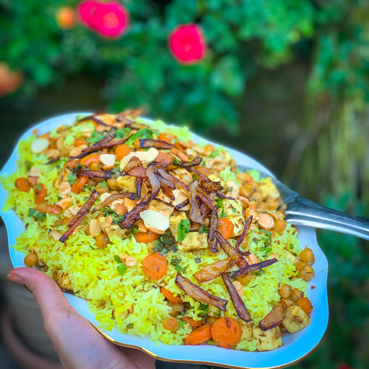 Vegetarian Biriyani - The dish of Kings, in a vegetarian form, equally as delicious and tasty. Just add fresh ingredients and vegetables of your choice.